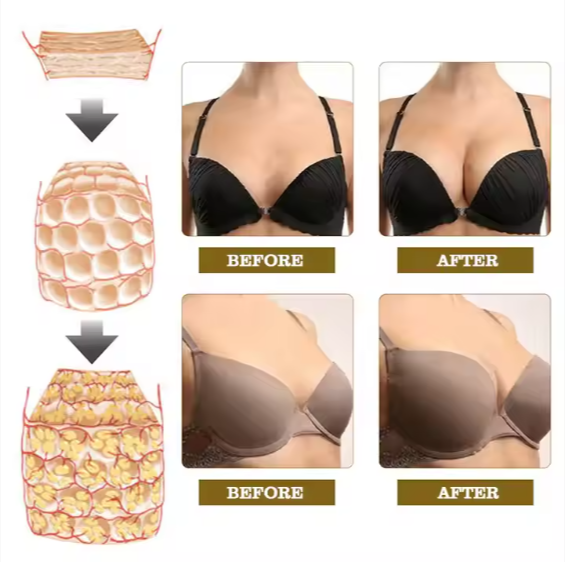 Caracteristici: 1. Ajutați creșterea bustului, faceți bustul plinuț și mai elastic. 2. Moleculele active au permeabilitate puternică, nutrienții sunt ușor absorbiți, făcând pielea netedă și hidratată 3. Extinde capilarele pielii, promovează circulația celulelor pielii, crește nutriția pielii. 4. Îmbunătățiți problemele de la bust, inclusiv pieptul plat, bustul lăsat, deformarea bustului 5. Ușor și respirabil, ușor de utilizat